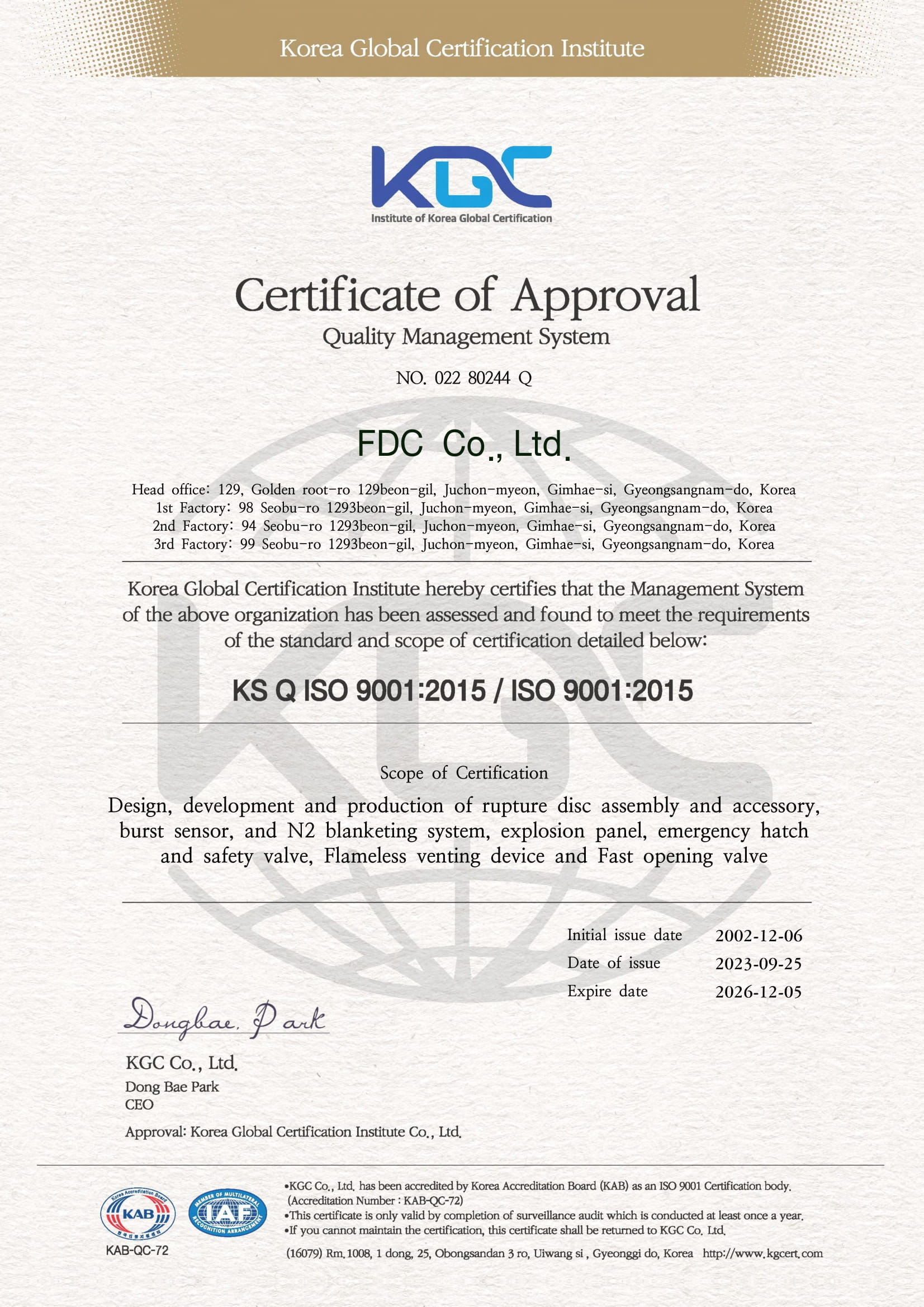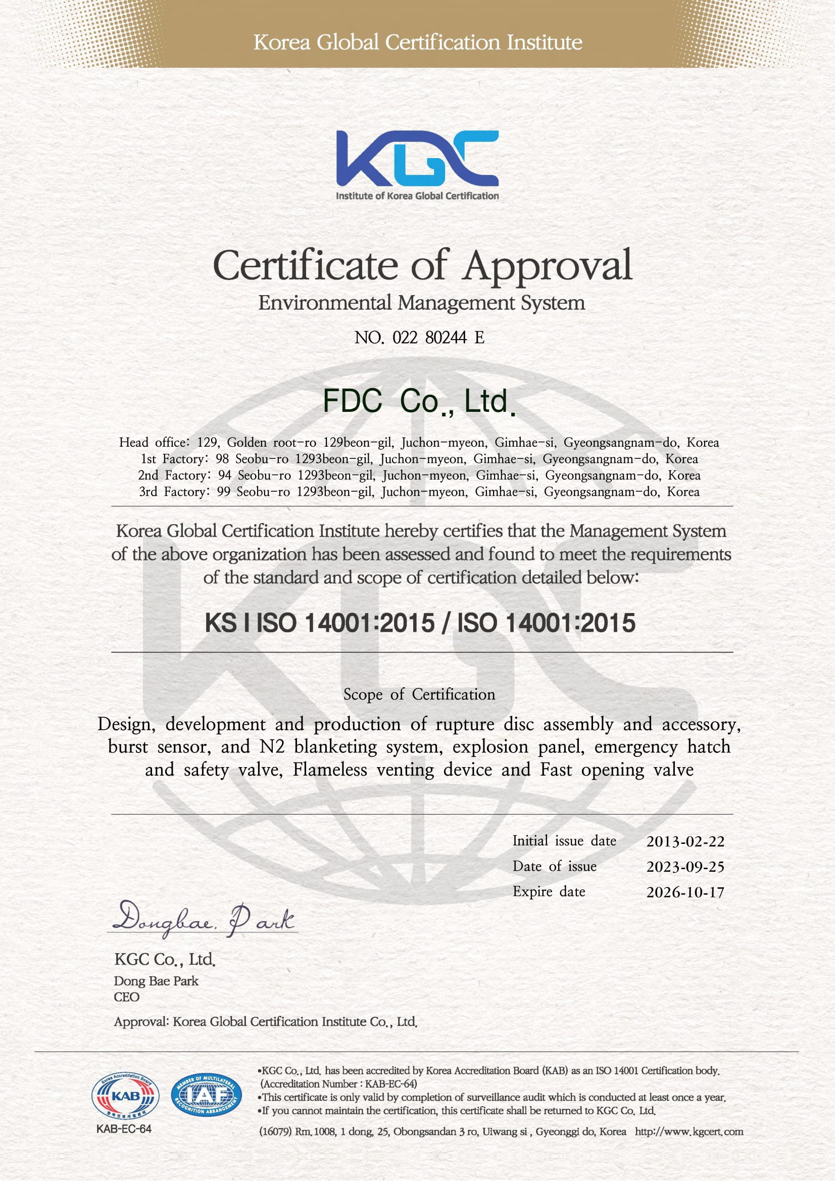 └ 제품 인증서