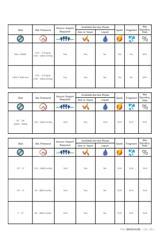 Gas or Vapor LiquidFlat Face Flange TypeFF50%MaxOperatingRatio0.01 ~ 0.5 kg/%u33a0(100 ~ 5000 mmAq)0.01 ~ 0.5 kg/%u33a0(100 ~ 5000 mmAq)Size Set. PressureRound Flat Type Round Dome TypeRectangular Flat TypeRectangular Dome TypeSpark FragmentNoAvailable Service PhaseYes Yes No NoYes Yes No No No 50%Vacuum SupportRequiredMax. %u03a636001500 X 2000 mmRaised Face Flange TypeFlat Face Flange TypeRFFFFLOWFLOWFLOWEXPLOSION PANELKSRPRKSRPSDescription Connection Type DrawingEMERGENCY RELIEF HATCHGas or Vapor LiquidMaxOperatingRatio150 ~ 5000 mmAq N / A N / A N / ASize Set. PressureRupture Rod & Seal Type Standard FlangeSpark FragmentAvailable Service PhaseYes N / A N / AVacuum SupportRequiredKSRH18\(450A ~ 900A)FLOWDescription Connection Type DrawingGas or Vapor LiquidMaxOperatingRatio12.5 ~ 8000 mmAq20 ~ 8000 mmAq20 ~ 8000 mmAqSize Set. PressureSingle Operating TypePilot Operating TypePilot Operating TypeStandard Flange orScrewed PipingStandard Flange orScrewed PipingStandard Flange orScrewed PipingSpark FragmentAvailable Service Phase Vacuum SupportRequiredKSBKTKSBKLN2 BLANKETING SYSTEM 1/2\1/2\1\KSBKSN / A Yes No N / A N / A N / AN / A Yes No N / A N / A N / AN / A Yes No N / A N / A N / AFLOW FLOWFLOW FLOWFLOW FLOWDescription Connection Type DrawingModel(Image)Model(Image)Model(Image)FDC BROSHURE | 24 | 25 |