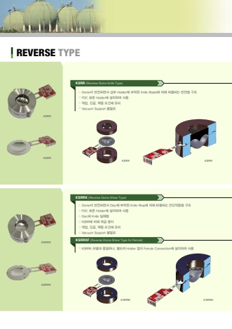 %u25a0 Dome%uc774 %ubc18%uc804%ub418%uba74%uc11c Disc%uc5d0 %ubd80%ucc29%ub41c Knife Ring%uc5d0 %uc758%ud574 %ud30c%uc5f4%ub418%ub294 %uc804%ub2e8%uc791%ub3d9%ud615 %uad6c%uc870%u25a0 FDC %ud45c%uc900 Holder%uc5d0 %uc124%uce58%ud558%uc5ec %uc0ac%uc6a9%u25a0 Disc%uc640 Knife %uc77c%uccb4%ud615%u25a0 KSRR%uc5d0 %ube44%ud574 %ucde8%uae09 %uc6a9%uc774%u25a0 %uc5ed%uc555, %uc9c4%uacf5, %ub9e5%ub3d9 %uc870%uac74%uc5d0 %uc720%ub9ac%u25a0 Vacuum Support %ubd88%ud544%uc694%u25a0 KSRRK %ubaa8%ub378%uacfc %ub3d9%uc77c%ud558%ub098, %ubcc4%ub3c4%uc758 Holder %uc5c6%uc774 Ferrule Connection%uc5d0 %uc124%uce58%ud558%uc5ec %uc0ac%uc6a9KSRRK (Reverse Dome Shear Type)KSRRKF (Reverse Dome Shear Type for Ferrule)%u25a0 Dome%uc774 %ubc18%uc804%ub418%uba74%uc11c %uc0c1%ubd80 Holder%uc5d0 %ubd80%ucc29%ub41c Knife Blade%uc5d0 %uc758%ud574 %ud30c%uc5f4%ub418%ub294 %ubc18%uc804%ud615 %uad6c%uc870%u25a0 FDC %ud45c%uc900 Holder%uc5d0 %uc124%uce58%ud558%uc5ec %uc0ac%uc6a9%u25a0 %uc5ed%uc555, %uc9c4%uacf5, %ub9e5%ub3d9 %uc870%uac74%uc5d0 %uc720%ub9ac%u25a0 Vacuum Support %ubd88%ud544%uc694KSRR (Reverse Dome Knife Type)REVERSE TYPEKSRRKSRRKSRR KSRRKSRRKKSRRKKSRRK KSRRK