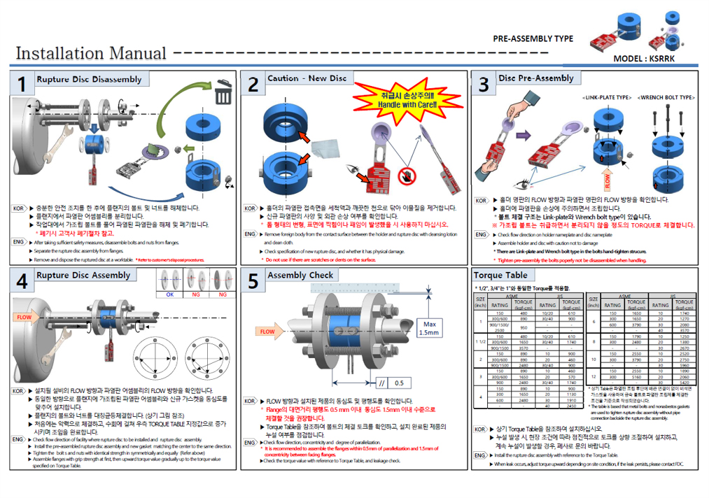파열판 설치를 위한 준비단계(Rupture Disc 검사, Holder 검사), 설치요령들을 숙지하여 안전사고를 예방 하실 수 있습니다.